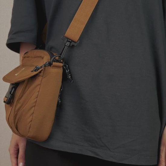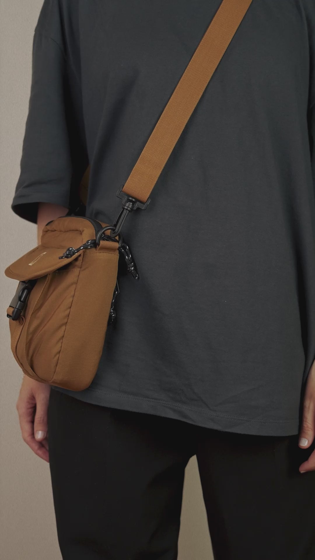 Crossbody bag crafted with ripstop made from recycled plastic waste. Adjustable strap.