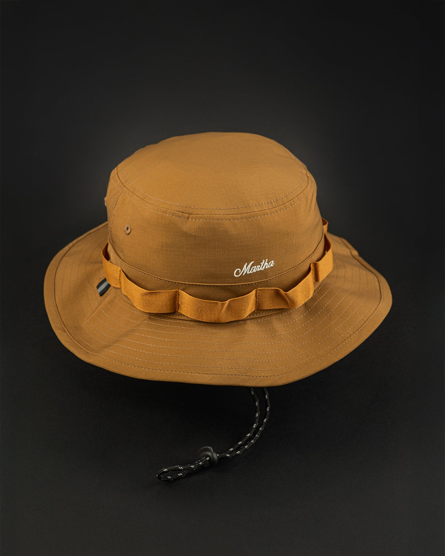Adjustable hat crafted with light and durable ripstop fabric made from recycled plastic waste. With adjustable chin strap.