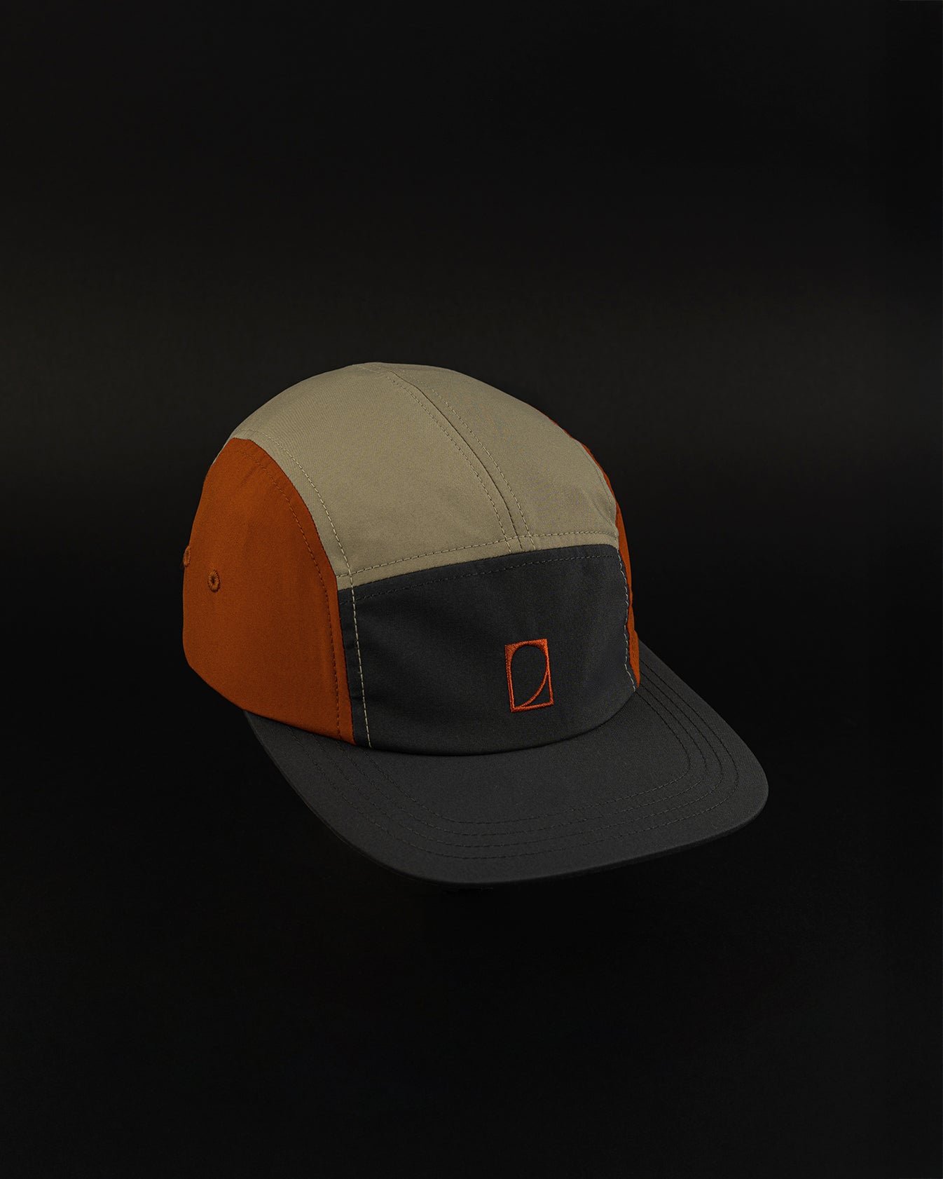 Adjustable hat crafted with lightweight, breathable sport fabric made from recycled plastic waste. Flat brim