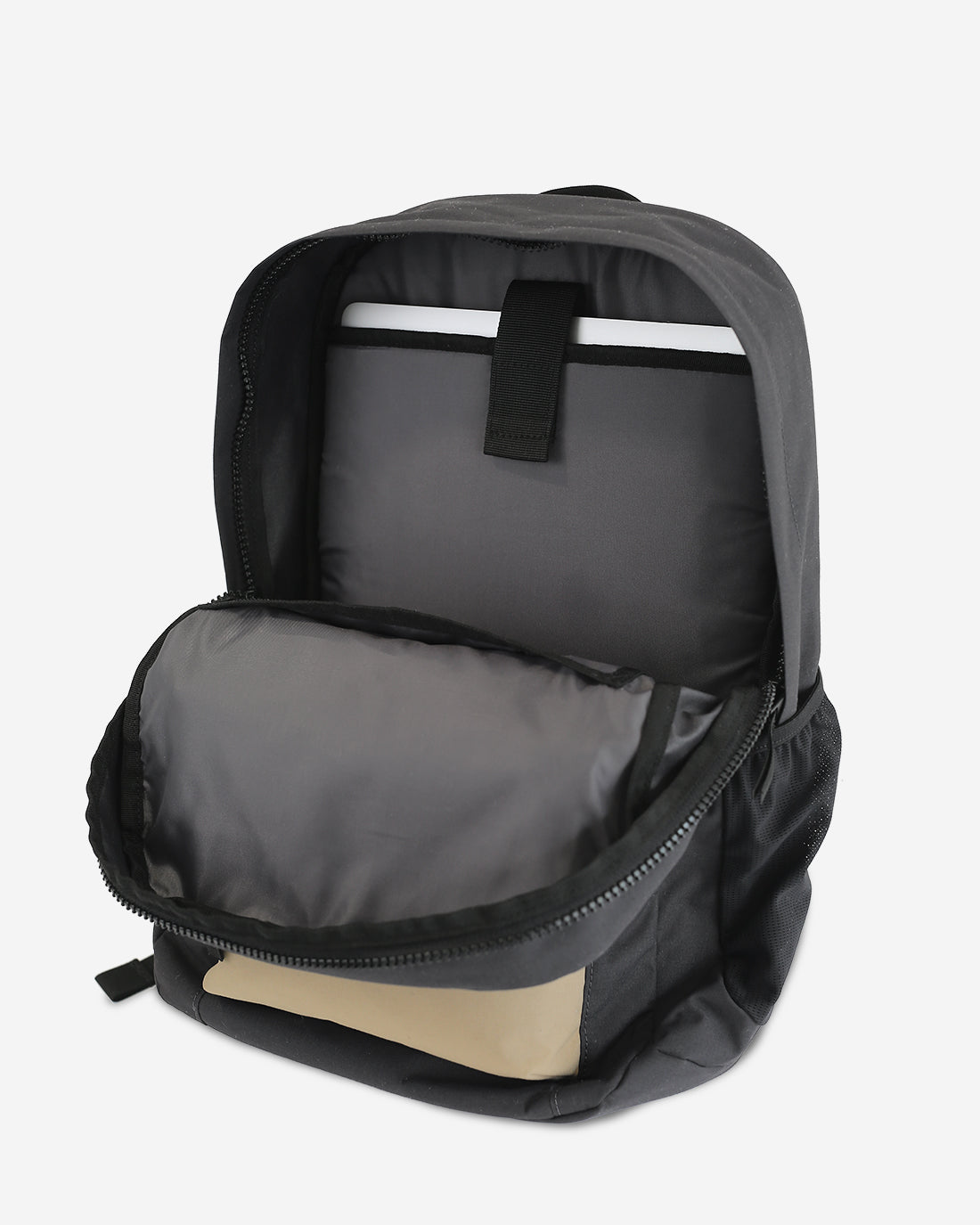 This 20-liter backpack features a large central pocket with a padded 15’’ laptop compartment, an internal divider, two side stretch pockets, two front secure-zip pockets, and a back zipper for easy access.